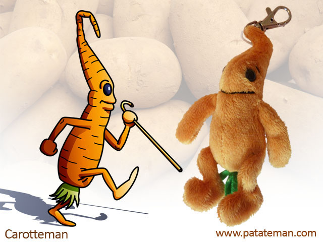Quand à Carotteman, c’est le dandy du jardin potager. Même s’il a un côté précieux et pointilleux sur les formes (de ce qu’il pense être de l’élégance), il reste néanmoins un joyeux flemmard qui n’en fout pas une ramée de la journée.