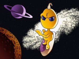 Alors qu’on a déjà dépassé la Lune, Tomateman demande ce qu’on pourrait bien aller foutre dans l’espace, à quoi Patateman répond qu’on improvisera sur place, et que, de toute manière, on va se marrer ! Alors, qu’il cesse de s’inquiéter pour des broutilles.