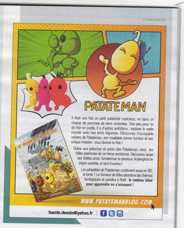 Alors, j’avais reçu mon exemplaire via la Poste récemment (mardi 27/11), mais malgré ma paire de lunettes toutes neuves, je n’avais pas vu l’encart Patateman ; et ce, après deux vérifications… L’un des contacts de l’agence de communication m’a dit que ça arrive plus souvent qu’on ne le croit ^^.