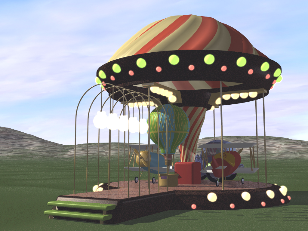 Manège (2008 ?), logiciel Lightwave. C’était une commande en partenariat avec le studio Créatyx, mais suite à une erreur de manipulation, j’ai supprimé les fichiers 3D…