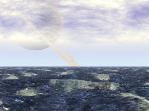 Océan extra-terrestre avec de l’écume – en mode bitmap – (2008 ?), logiciel Lightwave.