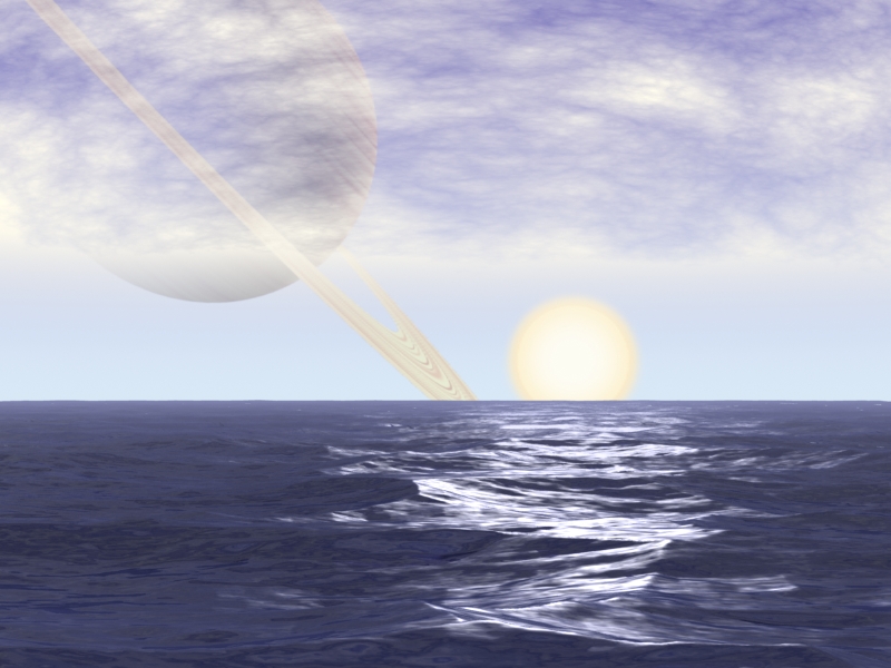 Une autre version d’un Océan sur une autre planète. Pour le ciel : texture d’environnement, (2008 ?), logiciel Lightwave.
