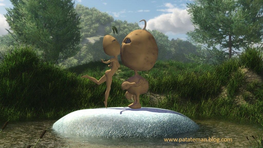 Love Potatoes (2008 ?), logiciel Lightwave, en rendu d’image mode radiosité. Que serait Patateman sans Patategirl ? Et que serait Patategirl sans Patateman ?