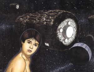 Mon Univers est un Vaisseau, d’après le roman Rite de Passage d’Alexei Panshin, (1995, l’illustration, pas le roman), gouache, 35×45 cm.