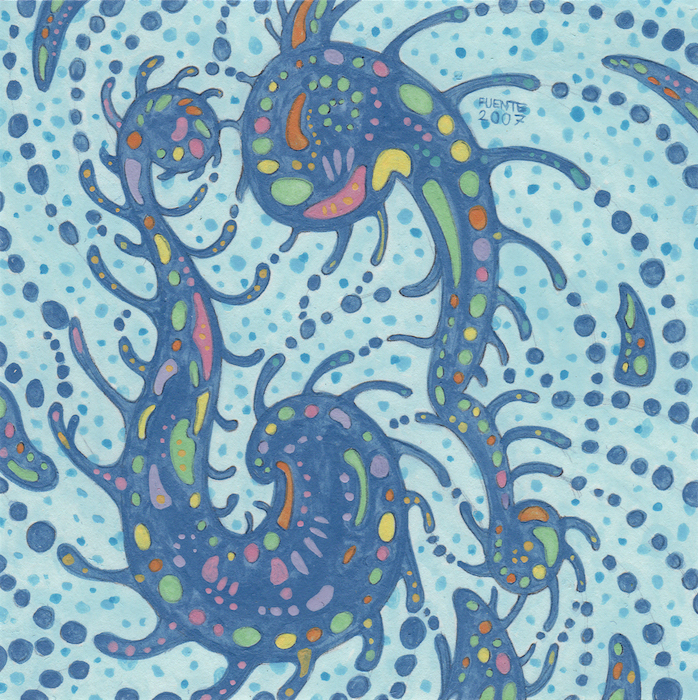 Amibes, abstrait, pour une fois (2007), gouache, 10×10 cm.