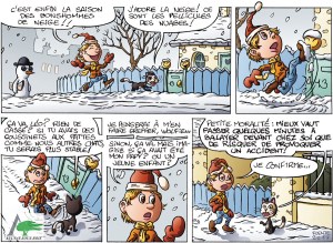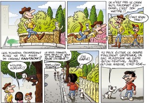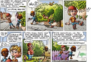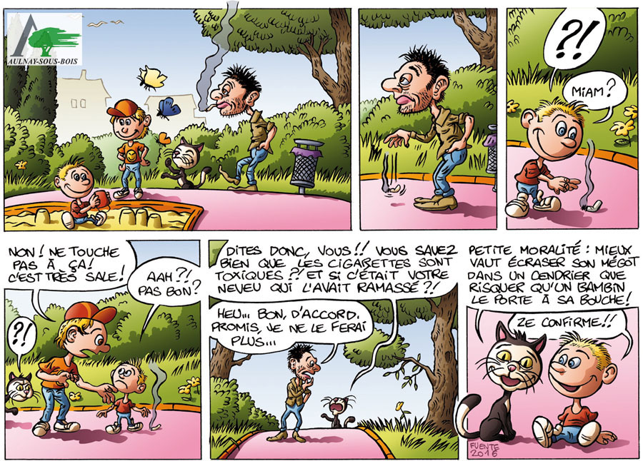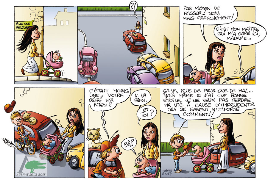 Ci-dessus, premier épisode d’une série de BD réalisée dans un but pédagogique, pour plusieurs numéros de la revue municipale Oxygène d’Aulnay-sous-Bois (2016 pour la BD ci-dessus), couleurs Photoshop.