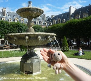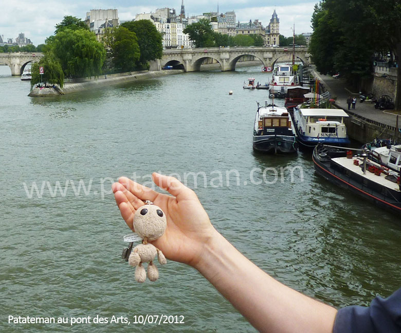 Patateman sur le Pont des Arts, sans cadenas à la patte, malgré sa fidélité à Patategirl (qui n’avait pas pu venir).