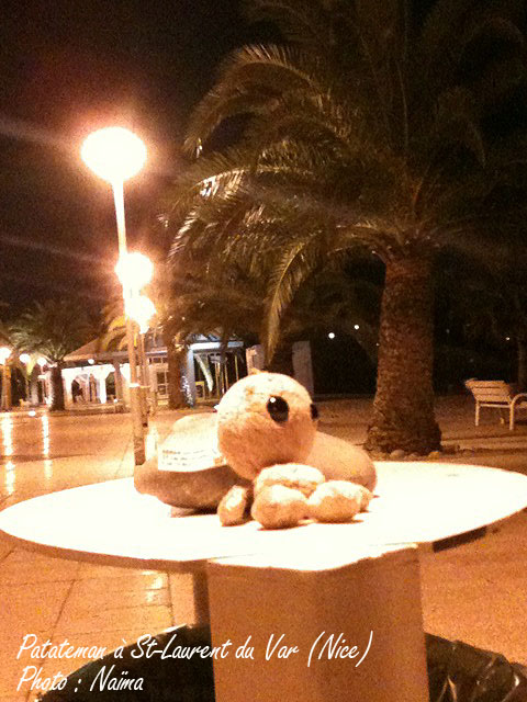 - En mai 2015, Patateman et ses amis ont fait un grand voyage pour de si petits bonshommes : un séjour de 15 jours au Bénin ! Ils y sont allés en compagnie de son imprésario (Roland), de la belle-soeur de celui-ci et de sa nièce. Tout ce petit monde logeait à Cotonou, et comme Patateman aime prendre l’air, on lui a fait découvrir la mer, (l’Océan Atlantique plus précisément), en profitant d’une petite balade à la plage de Grand-Popo.